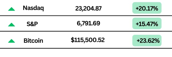 This year has been a masterclass in resilience. After a rocky 2024, markets have bounced back with confidence, led by tech, tempered by stable rates, and fueled by a surprising comeback in crypto.